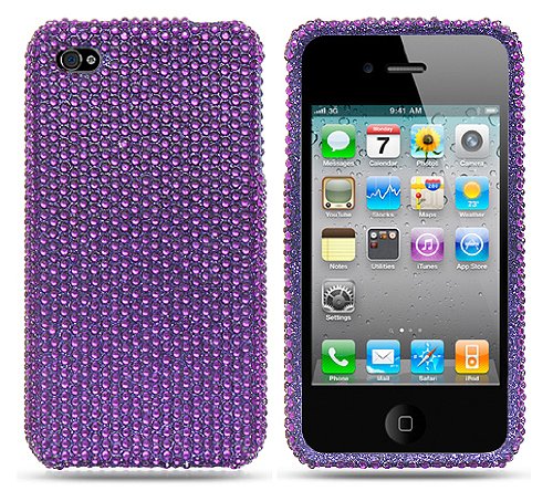 Apple iPhone 4 (AT&T/Verizon) Full Diamond Rhinestone Purple Premium Design Crystal Hard Case + Bonus 5.5 inch Light Green Screen Cleaning Cloth Review