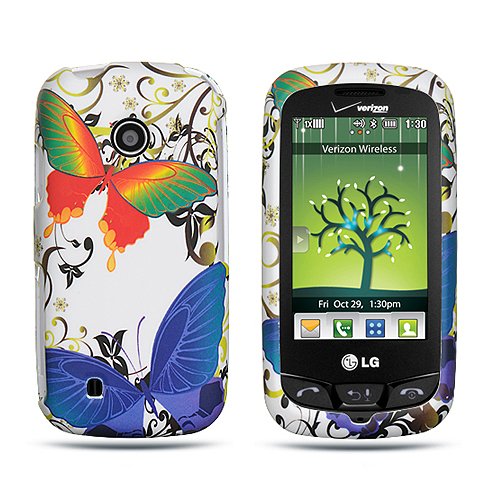 LG Cosmos Touch VN270 Rainbow Butterfly On White Premium Design Phone Protector Hard Cover Case + Bonus 5.5" Baby Blue Phone Cleaning Cloth Review