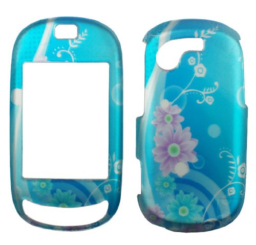Blue Daisy Purple Flower Wave Rubberized Snap on Hard Cover Protector Faceplate Cell Phone Case for T-Mobile Samsung Gravity T Touch SGH-T669 + Premium LCD Screen Guard Film Review