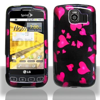 Black Raining Pink Heart Design Snap on Hard Shell Cover Protector Faceplate Skin Case for Sprint LG Optimus S LS670, Virgin Mobile Optimus V, USCellular Optimus U + LCD Screen Guard Film (Free Wristband) Review