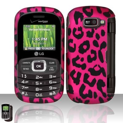 Hot Pink Leopard Rubberized Snap on Hard Shell Cover Protector Faceplate Cell Phone Case for Verizon LG Octane VN530 + LCD Screen Guard Film (Free Wrist Band) Review