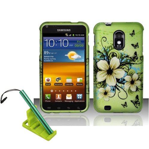 5 items combo for Sprint Samsung Epic Touch 4G D710 Galaxy S2 S II- Green Hawaiian White Flower Rubberized Snap on Hard Cover Shield Case, aluminum capacitive stylus pen, adjustable mini phone stand, screen protector film, case opener tool Review